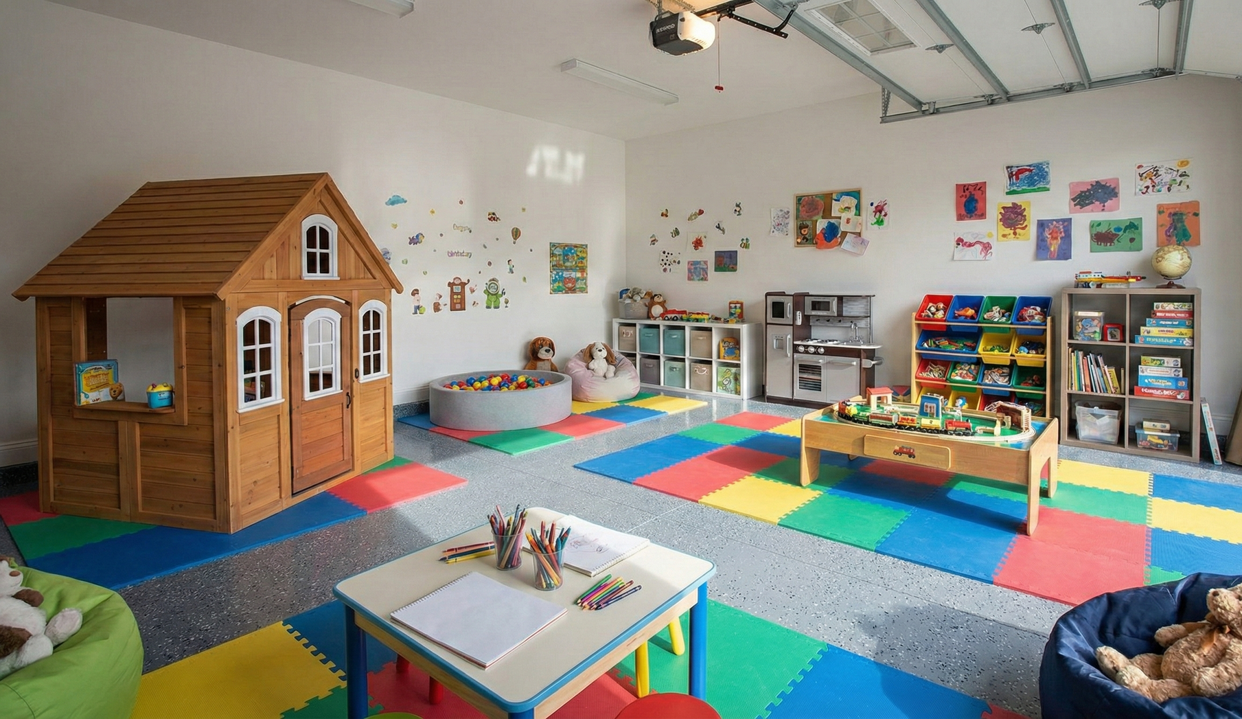 Turn your garage into a bright, welcoming play area where kids can learn, create, and have fun every day. Our epoxy flooring provides a smooth, dust-free, and easy-to-clean surface that helps keep toys, art supplies, and activity zones organized and hygienic. For families in Port Orchard and nearby communities, this transformation creates a flexible space that grows with your children—from playtime to homework to hobbies. With durable, stain-resistant protection and a polished look, your playroom stays inviting, safe, and ready for whatever the day brings.