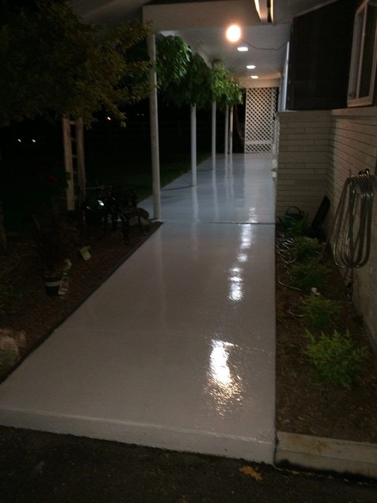 Primer: After prepping we use an Epoxy Water Vapor Barrier to prime the concrete. This is a two-part epoxy that works well in the presence of water vapor. Concrete can be full of moisture and unfortunately some companies use coatings that are only designed for dry concrete. World class glues are made from Epoxy for good reason, they are sticky! Our coatings from South Fork Concrete Coatings are designed to work in tough conditions, they go down and stay down!