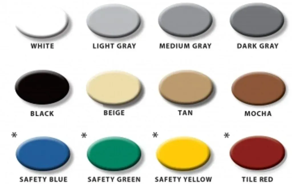 Top Coat: We use a Urethane top coat that matches the color of the prime coat. These Urethane Coatings are designed to be tough, real tough. There is a 200-mesh grit in the top coat that is the same stuff they use on aircraft carriers. You can work on it, you can spill on it, you can clean it and it will take good care of your shop for many, many years.
